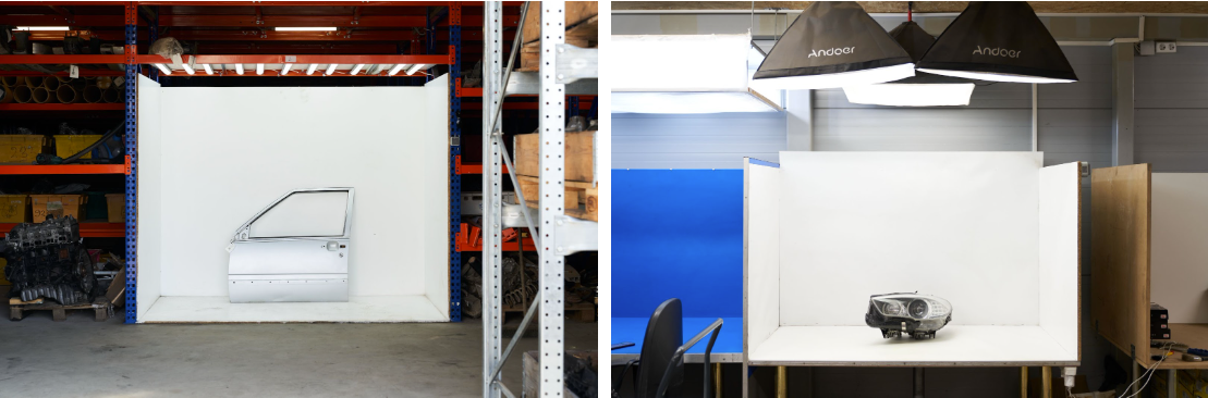 2. Consiga una cabina de fotografía adecuada para pequeños detalles y una cabina de fotografía para piezas grandes como parachoques y capó. Además, no olvida una buena iluminación.