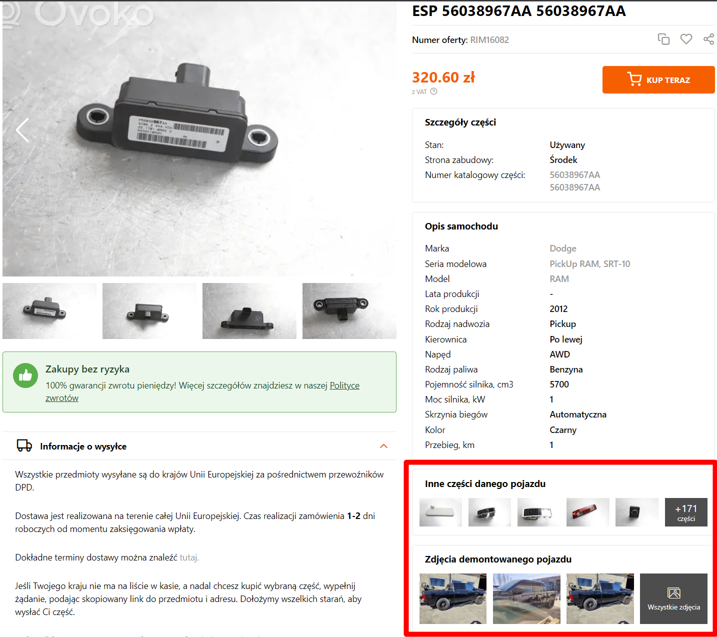 Jeśli sprzedajesz mniejszy przedmiot zrób co najmniej 3 do 5 zdjęć i nie zapomnij zrobić zdjęcia kodu części, jeśli część go posiada.