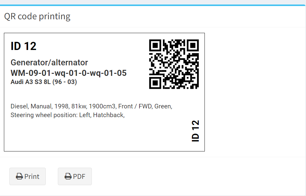 Jeśli nie korzystasz z rozwiązania Ovoko, naciśnij przycisk „PDF”, a uzyskasz dostęp do drukowania etykiet części starą metodą drukowania.