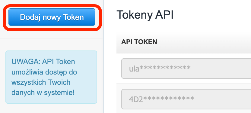 - System wygeneruje nowy token API. Skopiuj ten ciąg znaków – to jest Twój Token API. Ważne: Zapisz ten token w bezpiecznym miejscu. Ze względów bezpieczeństwa zostanie on wyświetlony tylko ten jeden raz.
