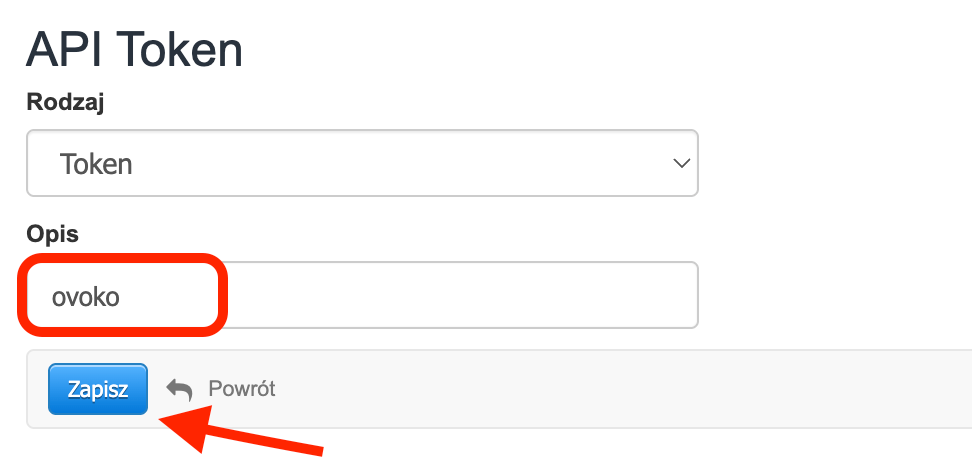 - W polu Opis wpisz nazwę dla tokena (np. "ovoko"), aby łatwo go zidentyfikować, i kliknij Zapisz.